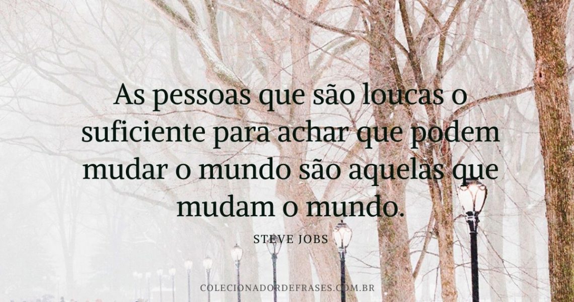 Frases Inspiradoras, Steve Jobs As pessoas que são loucas o suficiente para achar que podem mudar o mundo são aquelas que mudam o mundo. 29 de janeiro de 2015 / Visualizações: 2.551