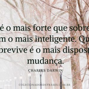 Charles Darwin, Frases Inspiradoras Não é o mais forte que sobrevive, nem o mais inteligente. Quem sobrevive é o mais disposto à mudança. / 28 de janeiro de 2015 Leia mais