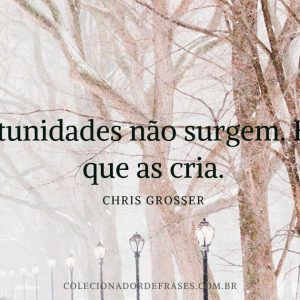 Chris Grosser, Frases Inspiradoras Oportunidades não surgem. É você que as cria. / 28 de janeiro de 2015 Leia mais
