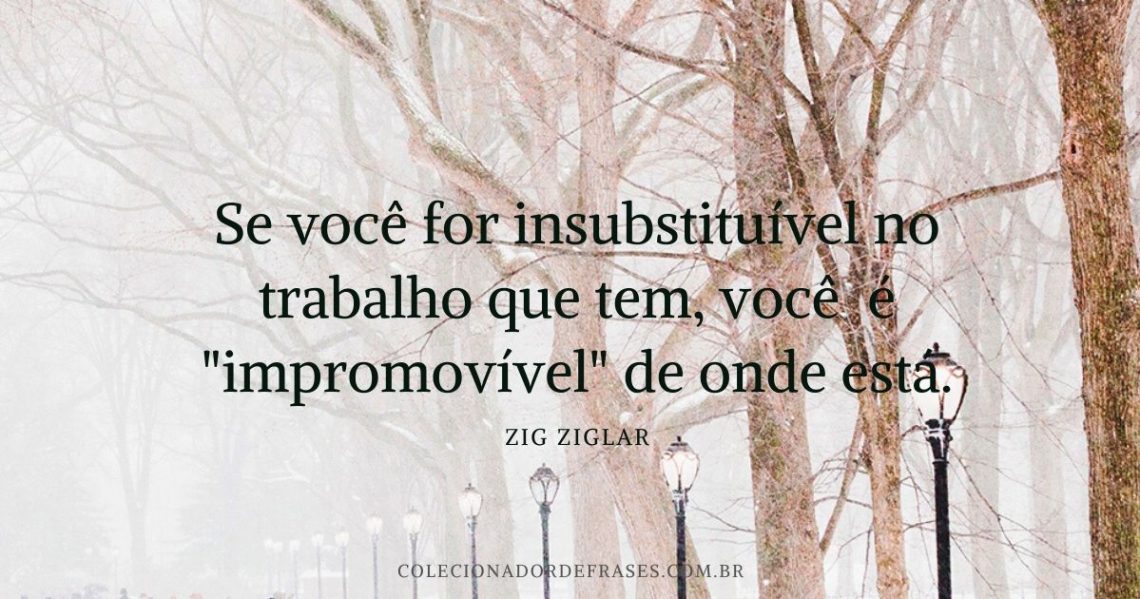 Frases Inspiradoras, Zig Ziglar Se você for insubstituível no trabalho que tem, você é “impromovível” de onde está. 1 de fevereiro de 2015 / Visualizações: 2.525