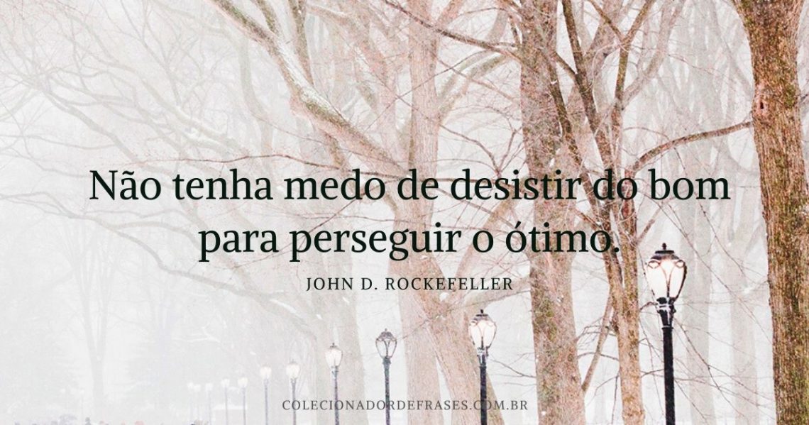 Frases Inspiradoras, John D. Rockefeller Não tenha medo de desistir do bom para perseguir o ótimo. 28 de janeiro de 2015 / Visualizações: 3.002